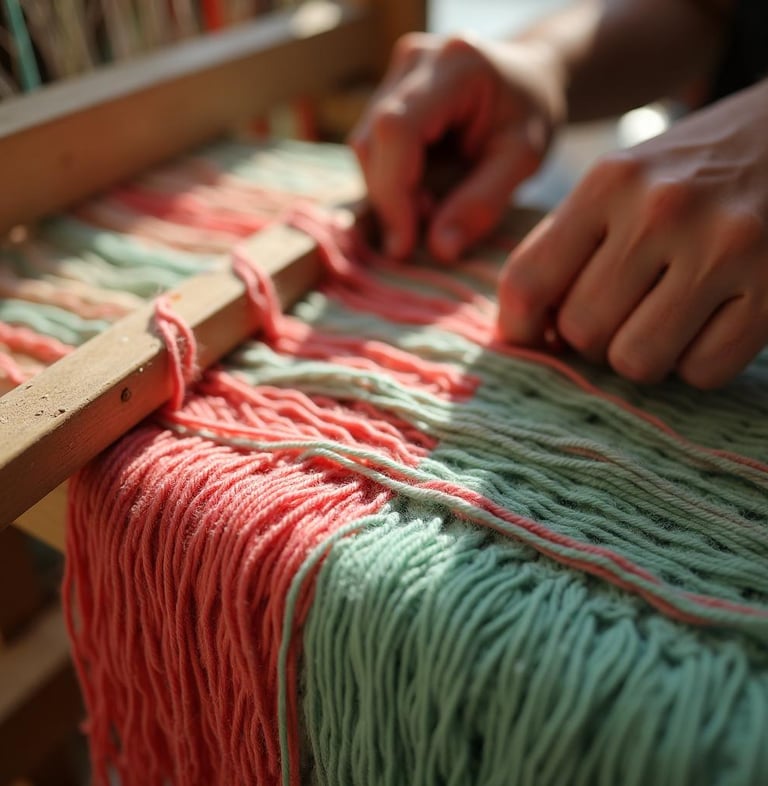 Every stitch begins with intention — choosing colors that speak to emotion and texture that invites touch.